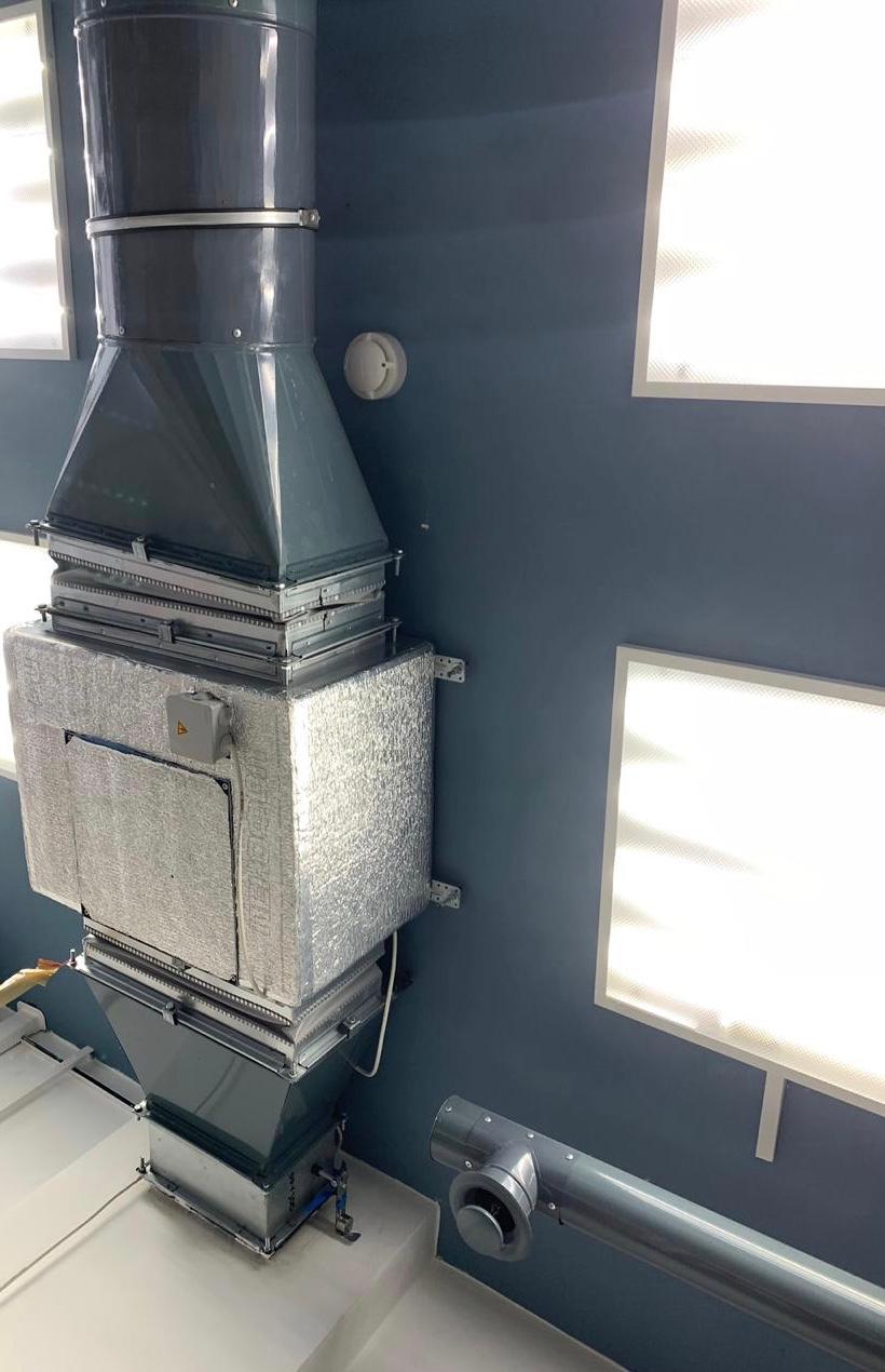 Воздухообмен до 10 крат при полной загрузке производства. Свежо и тепло в помещении пекарни при работающих печах, фритюре, мукосейке.